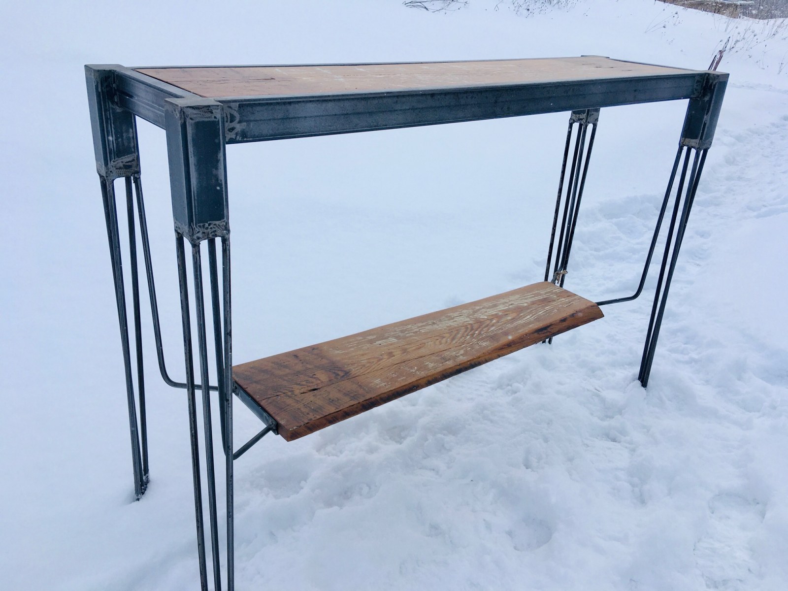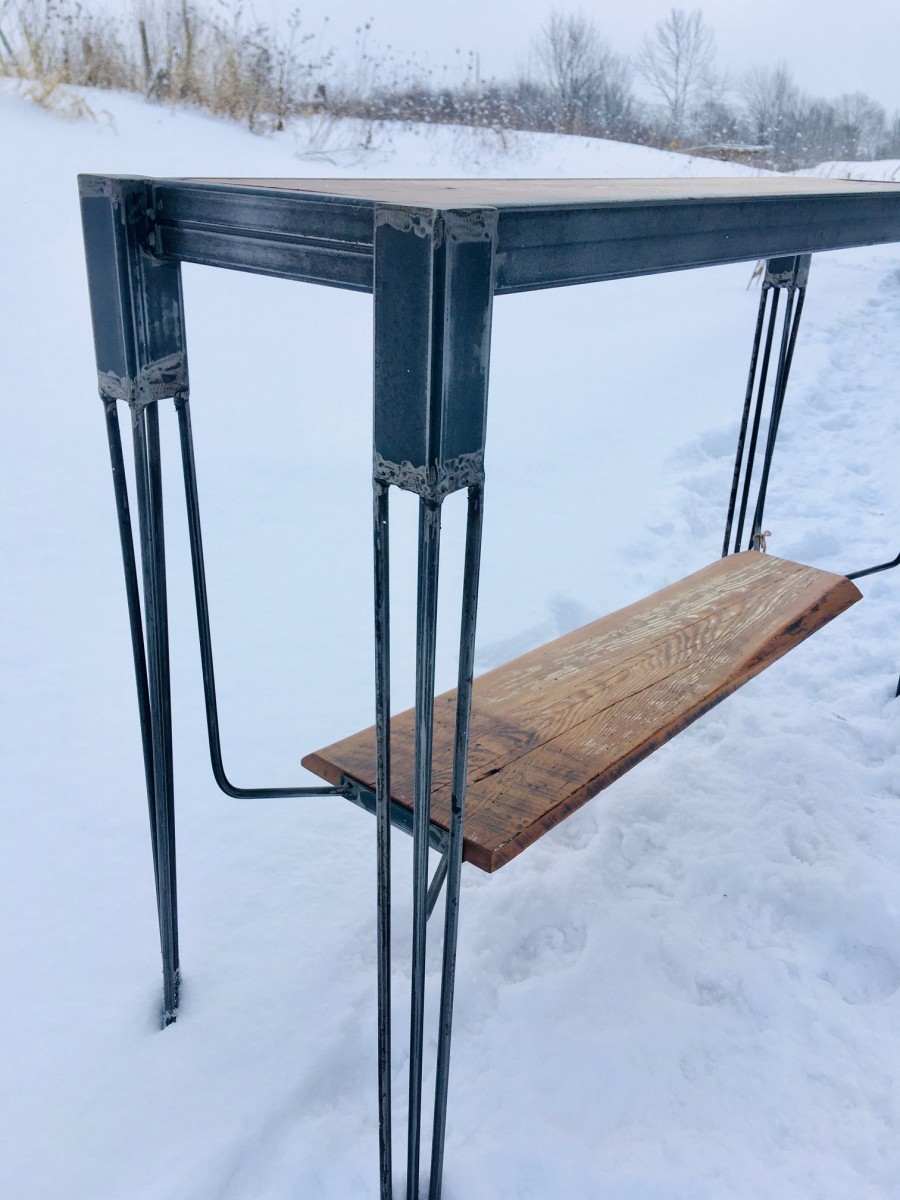 Reclaimed Wood Console Table with floating shelf